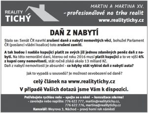 senátoři ODS navrhli zrušení daně z nabytí nemovitých věcí, bohužel parlamentní vládní koalice + KSČM na návrh poslance ČSSD Foldyny toto zrušení zamítla.