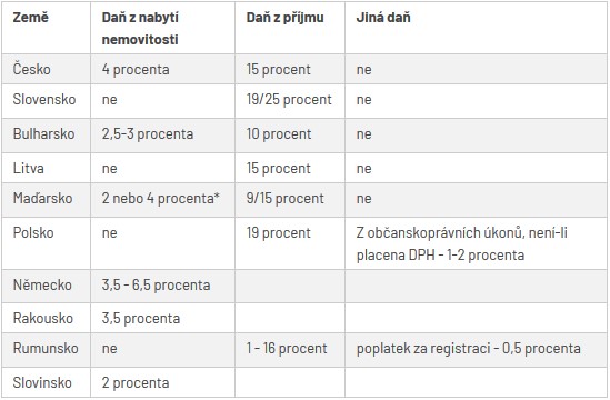 Výše daní z nabytí nemovitosti v některých okolních státech:
